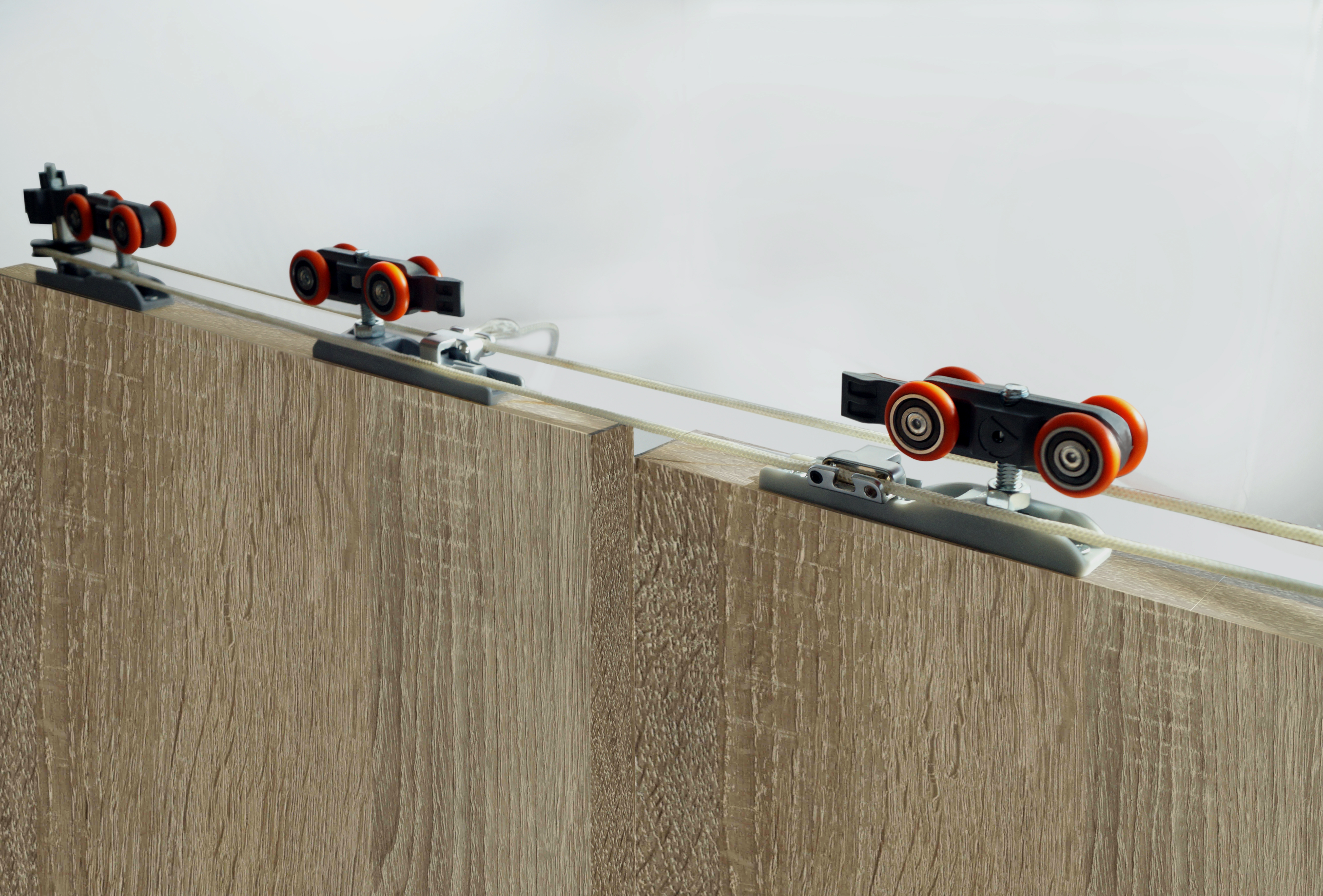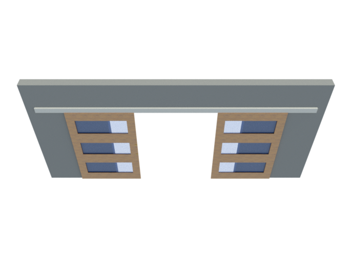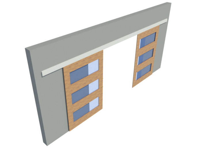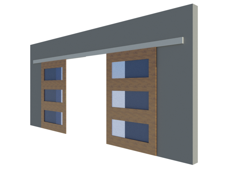 A single movement opens both doors in the opposite direction, in synchronized and progressive mode. | It allows to regulate the area of overlap. | It gives flexibility to the spaces delivering a large opening of the opening. | Having no guide to the floor, the passage is always clean and without interruptions in communication between environments. | System installation and regulation can be done completely on one side only. | Possibility of installing outside the opening, using the wide wall connector. | Guide to the floor with polín reduces friction with wood.