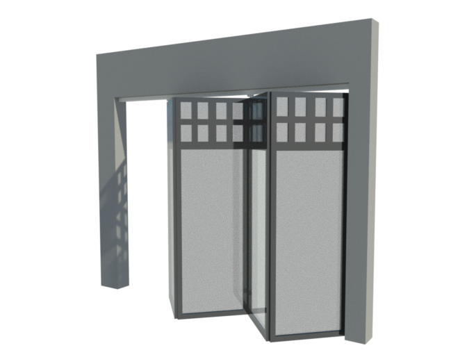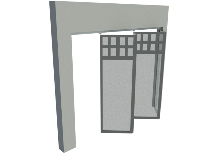 Easy installation. | Trolley and guide with height adjustment. | Tempered steel bearings, delivering greater durability and excellent performance against high demands. | Thanks to the geometry of the car and guide, it is possible to minimize the space in the stacking area, giving a greater breadth in the available access. I Applications in 2 and 4 doors with possibility of mirror installation (on both sides of the opening) to cover a larger surface. | It can be folded to the right or left of the opening, as well as to the inside or outside of it.