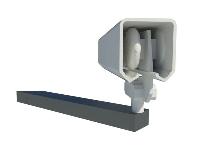 Sistema deslizante suspenso para portões dobráveis de até 75 Kg. Por lâmina, possui rolamentos de aço temperado.